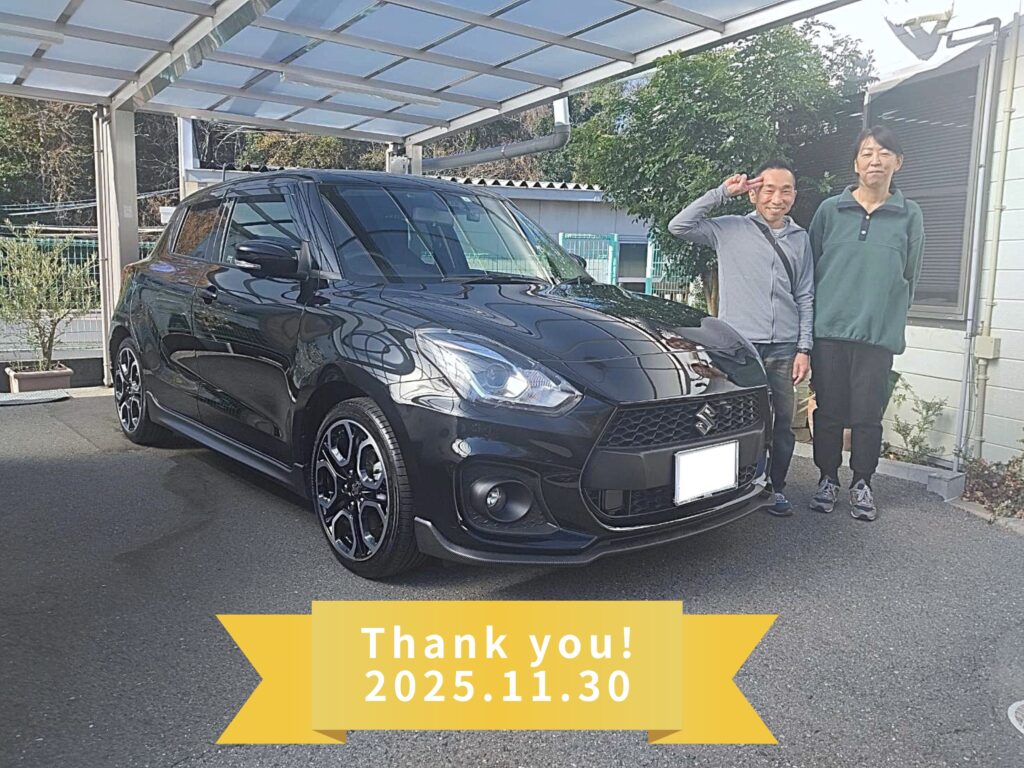 スズキ・スイフトスポーツ 全方位モニターPKGをご納車いたしました。コンパクトながら力強い走りが魅力の1台で、快適性と安全性も両立しています。N様の新しいカーライフを全力でサポートいたします。